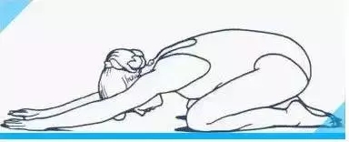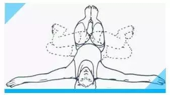 坐位膝關(guān)節(jié)分開(kāi),身體前彎,保持對(duì)下腰部舒適的牽伸。