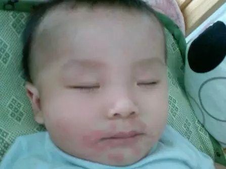 這張圖比較典型,符合上面列出的嬰兒濕疹的幾個明顯特征。